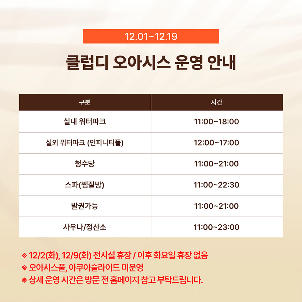 ★특수기간★ 12월 20일 ~1월 4일 / 2월 14일~2월 18일 입장가능